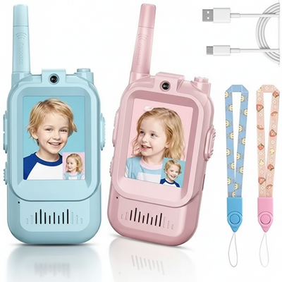 The walkie-talkies provide a reliable range of up to 2–3 miles in open areas and slightly less in areas with buildings or trees.